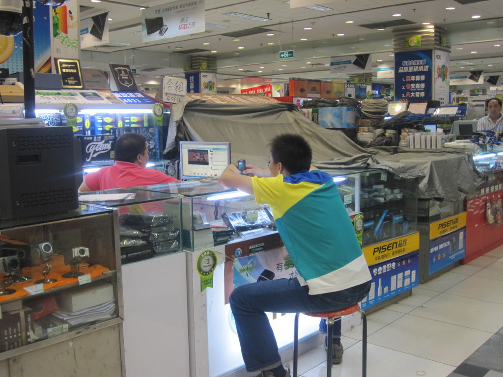 Après notre rude mais époustouflante randonnée d’hier sur la muraille de Chine, nous décidons aujourd’hui de faire du shopping dans le temple de l’électronique, à la station de métro « Zhongguancun ».